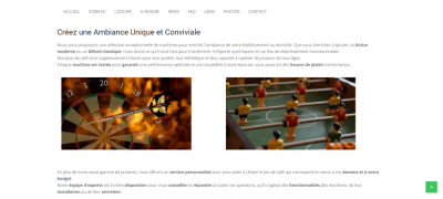 Le site présente de manière directe les différentes activités de l’entreprise : billards, baby-foot, kickers, jeux de fléchettes et autres équipements destinés aussi bien aux professionnels qu’aux particuliers. L’objectif était de créer un site sérieux, facile à parcourir et capable de rassurer dès les premières secondes.