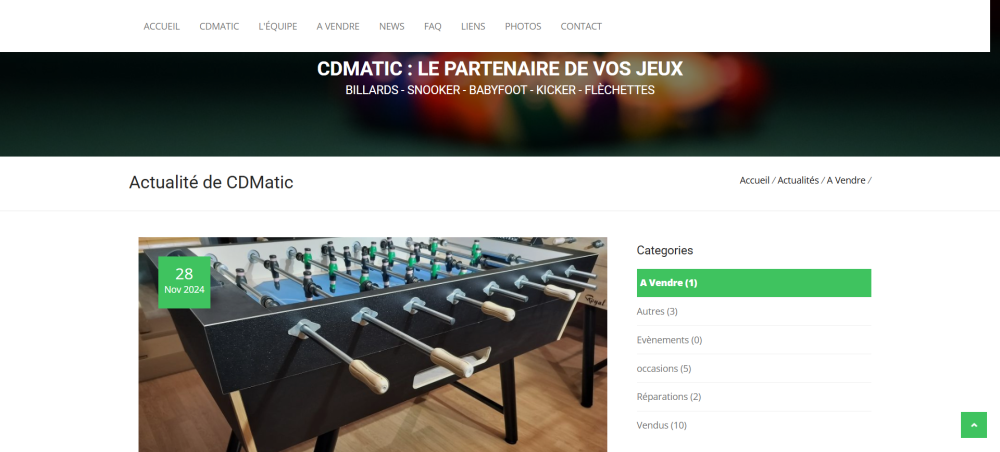 La principale contrainte du projet concernait la gestion des petites annonces. CDMATIC souhaitait pouvoir publier des annonces de vente pour du matériel de jeux de café comme des billards, des baby-foot ou des jeux de fléchettes, tout en ayant la possibilité d’indiquer simplement lorsqu’un produit était vendu.