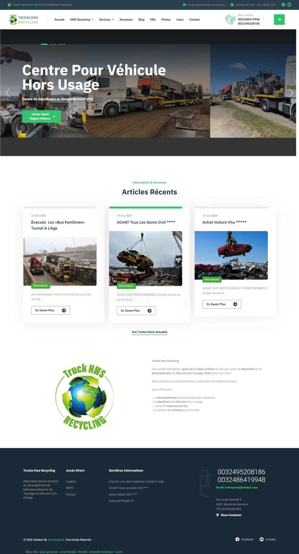 Nous avons accompagné la société Trucks HWS Recycling dans la création de son site Internet afin de renforcer sa présence en ligne et valoriser ses activités.